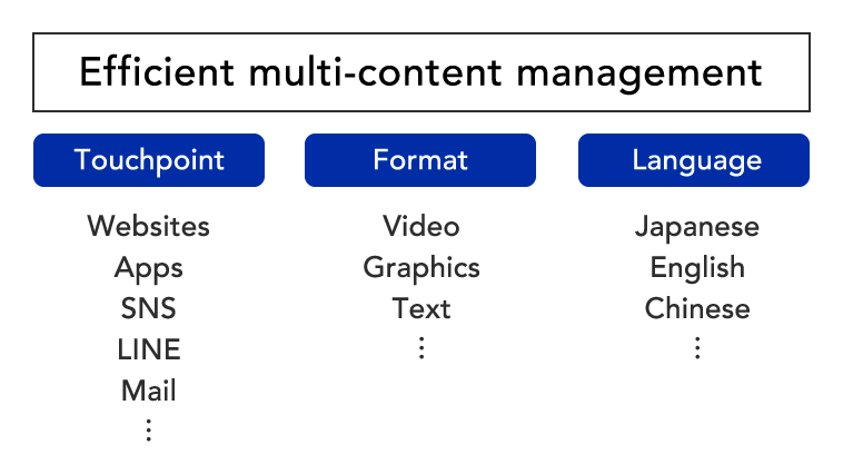 We provide seamless, end-to-end support for planning, creating, and managing optimal content at every customer touchpoint across all formats and languages based on CX strategy and advanced technology.
