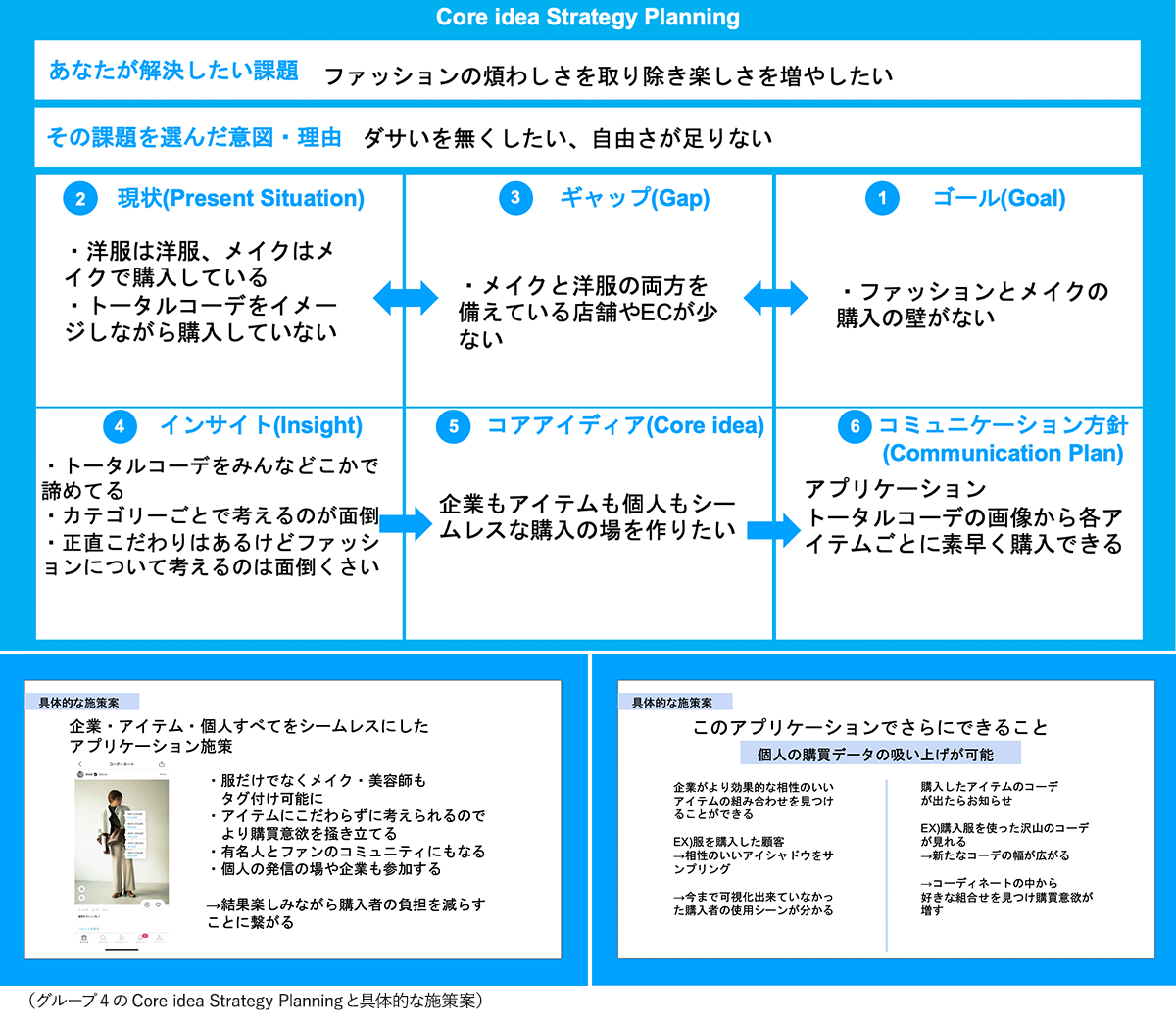 グループ4の発表:「ファッションとメークの垣根がなくなってトータルコーディネートができるように」