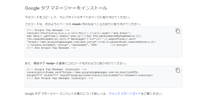 利用規約を確認して「はい」を選択すると次の画面に移ります。計測用タグが表示されるので、それをコピーしてテキストメモ等に保存します(上下ともに)
