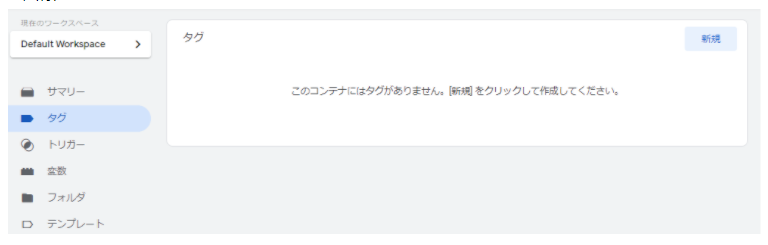 左メニューのタグをクリックして、右上に表示される新規をクリックします。