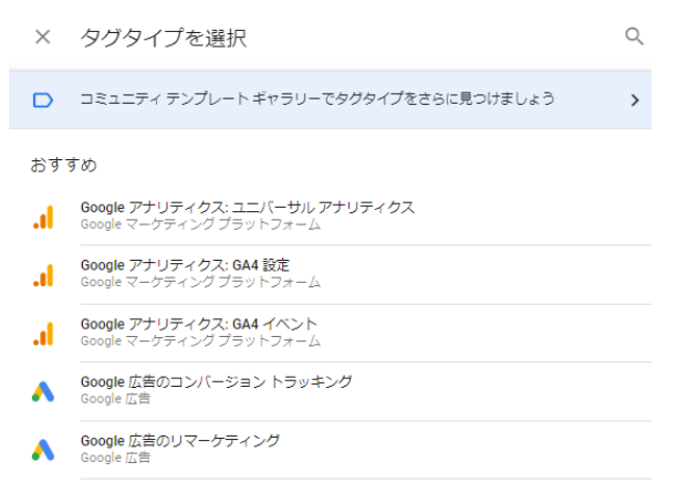 タグタイプについては、それぞれ設定したアナリティクスプロパティを設定してください。GA4だけなら「GA4設定」を選択します。