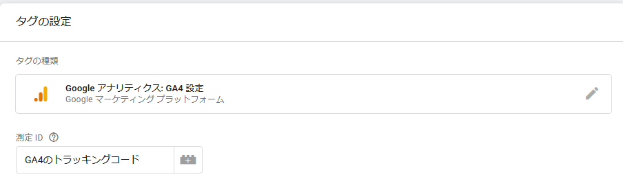 ※ユニバーサルアナリティクス計測の場合、タグ設定時に「Googleアナリティクス設定」という変数が利用できましたが、GA4の場合はその必要がありません。「GA4設定」タグがUAにおける「GA設定タグ」に相当するので、このタグはGA4イベントのタグから参照する共通のタグとして機能します。