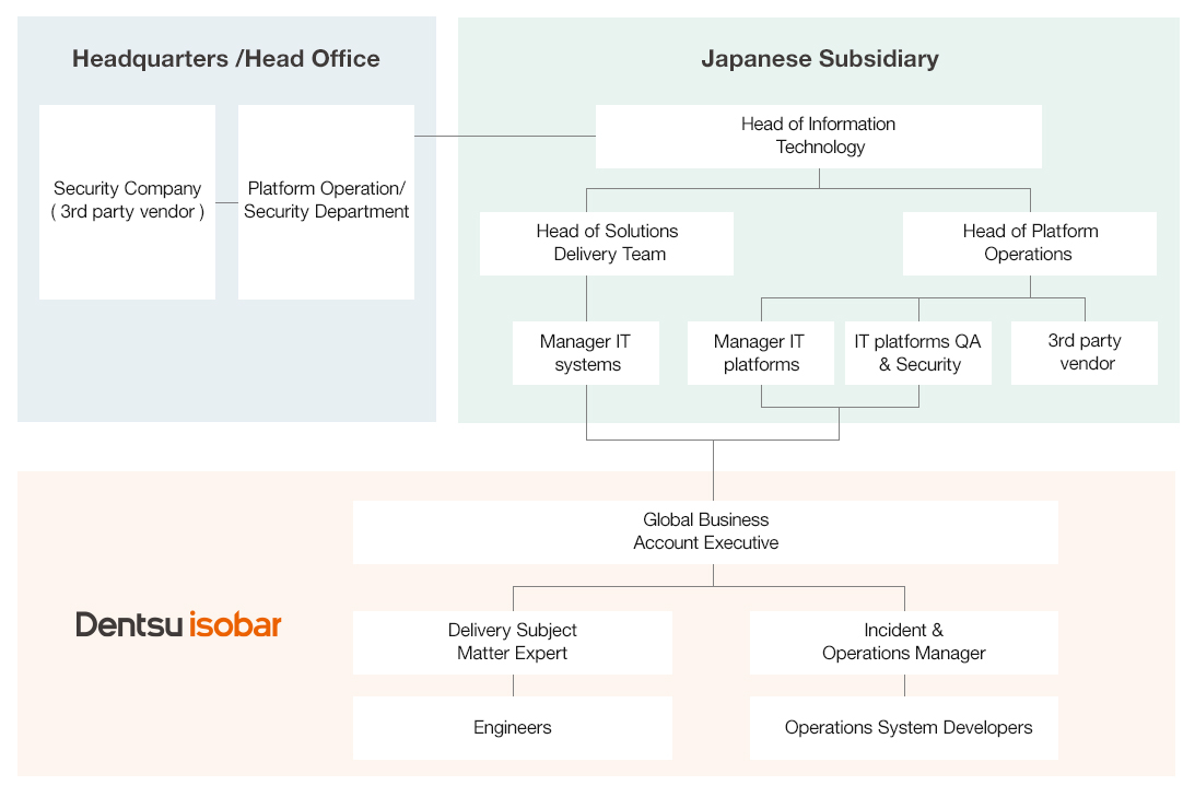 このような機会で得た知見を生かし、電通アイソバー(現 電通デジタル)のグローバルビジネス部は、グローバル企業の本社担当部署とその日本支社の担当部署とのやり取りの間に立ってプロジェクトを円滑に進めることもあれば、日本のグローバル企業に務める現場担当とその海外拠点の担当部署との間に立ってプロジェクト進行のサポートなども行なっています。
