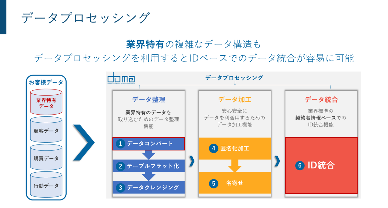 ①データプロセッシング:手間がかかるバラバラなデータの設計・加工が容易に