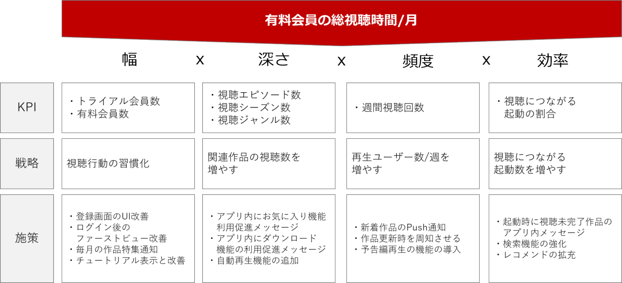 ①「注目」の事例:動画配信サービスのNorth Star MetricとKPI