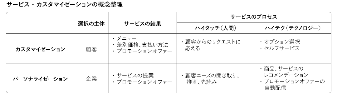 さらにパーソナライゼーションとカスタマイゼーションをカバーしたサービス・カスタマイゼーションは、一人ひとりに相応しいサービスを提供すること全般を指します。