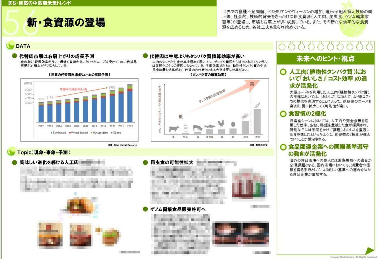 また、それぞれの「未来トレンド」ごとに、1ページで概要をまとめた冊子(約60ページ)を作成しており、正式には、マップと冊子のセットをまとめて「未来曼荼羅」と称しています。