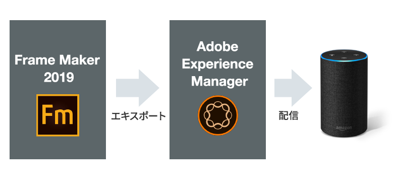 平は、「弊社では、Frame Makerで準備したコンテンツをAEMからWeb上に配信する機能に加え、どのように他のチャネルにも配信できるか、を考え、AEMからAmazon AlexaにJSON形式でコンテンツを書き出して、AR・VRに配信する、といった取り組みを進めているところです」と、複数の配信先に最適な形式でアウトプットする試みについてご紹介しました。