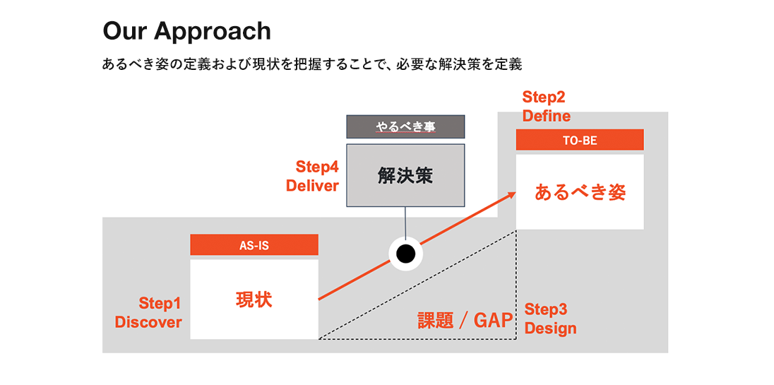 - Define あるべき姿を定義し、そこに辿り着くためのロードマップを検討するフェーズ。