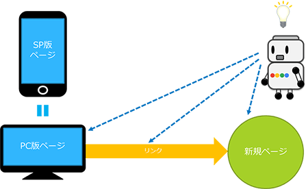 MFI導入前のGoogleは「PC版ページ」を見るため、リンク先のページを発見し、リンクを評価に利用できますが...