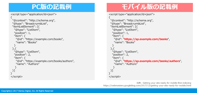 ② 別URL形式のサイトの場合、マークアップ内部のURLもSP版に合わせて書き換える必要があります※10。