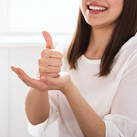 手話をしている人の動きを読み取って、テキストに変換します。