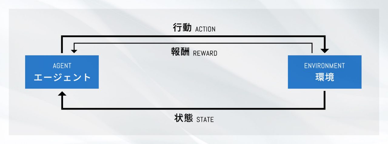 強化学習は主に二つの要素から成り立っています。エージェントと呼ばれる学習主体と、制御対象となる環境です。強化学習のモデル下において、エージェントが何らかの行動をすると、その環境下におけるエージェントを取り巻く状態が変化し、その結果が報酬としてエージェントに対してフィードバックされます。その報酬を最大化させるために、エージェントの行動を最適化していくのが強化学習の基本的なモデルとなります。