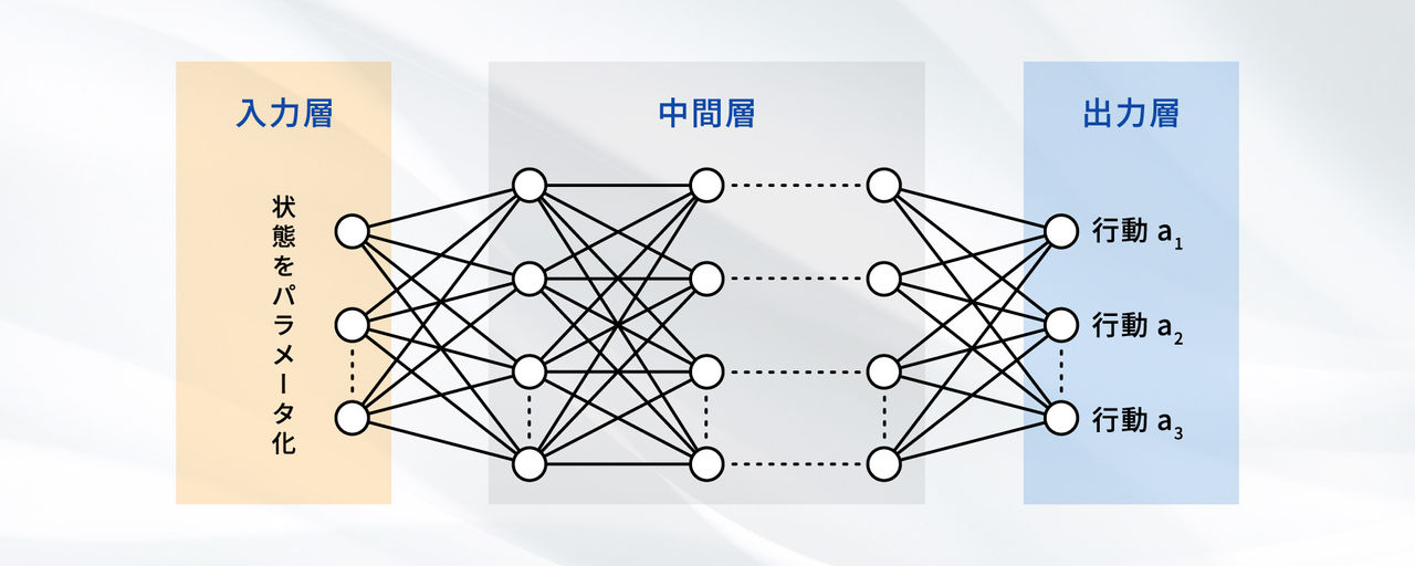 深層学習の技術は、強化学習にも応用され、深層強化学習という分野が生み出されました。深層強化学習では、Q学習をディープニューラルネットワーキングの技術を応用することで編み出されました。