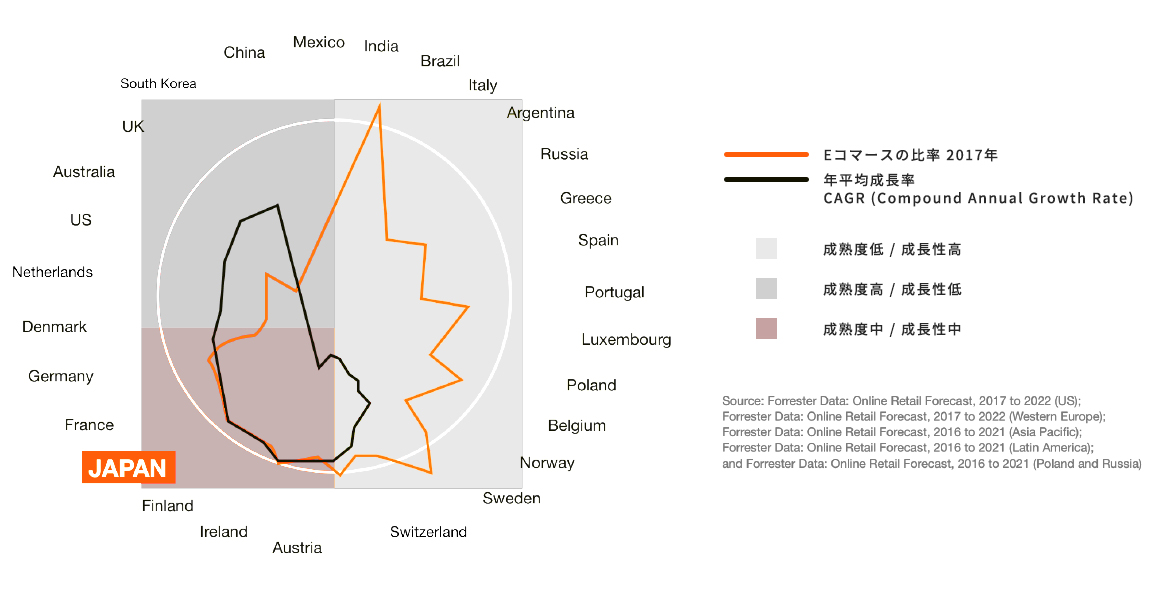 「日本の市場は非常に成熟しており、アジアパシフィックにおいて中国に次ぐ大きな市場規模を誇っている。2018年のEC売上は、956億ドルにもなっているほどだ。この背景には、インターネットの普及率の高さ、EC利用者数の多さ、ひとりあたりのECでの購入金額の高さが挙げられる」とした。