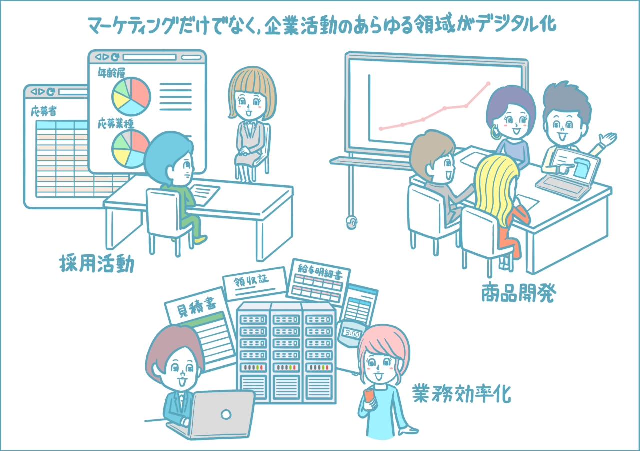 同時に、デジタルデータ活用の波はマーケティングにとどまらず、企業におけるほかの業務とも融合し始めています。