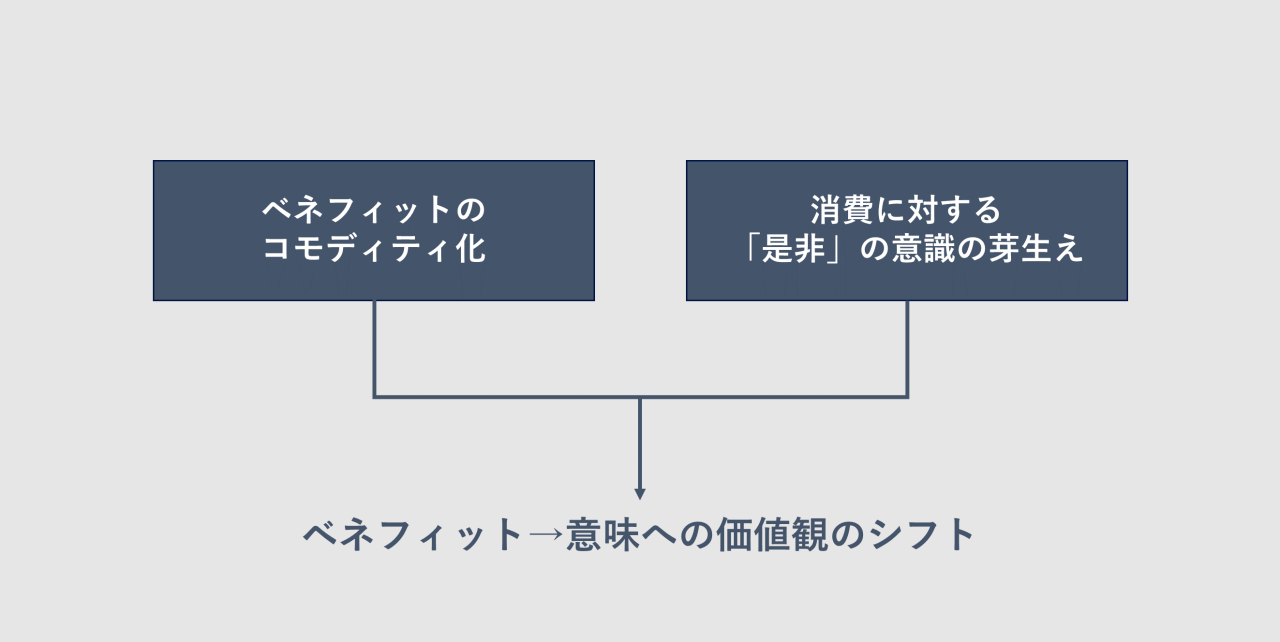 これらの変化から、“生活者は消費に「ベネフィット」だけではなく、「意味」をも求めるようになった”と言えます。
