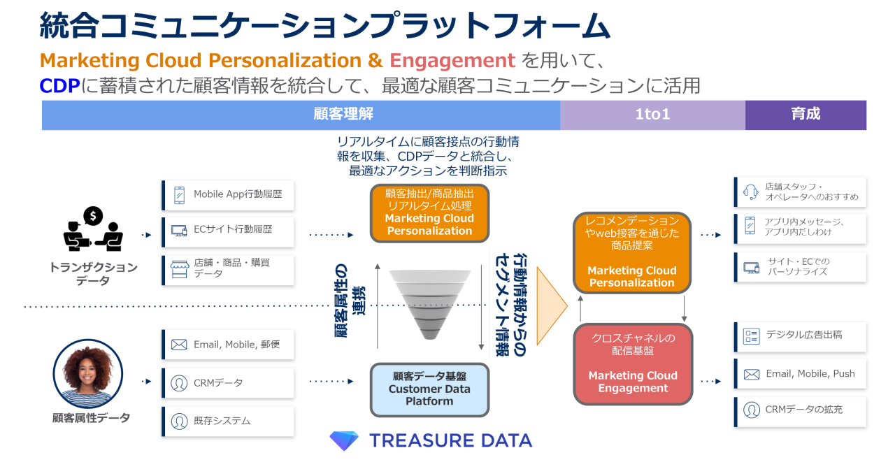 CDPと連携して「Marketing Cloud Personalization」「Marketing Cloud Engagement」を活用することで、