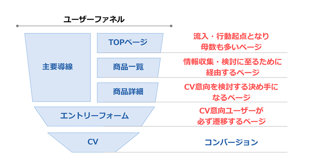 サイトには、コンバージョンに至るまでに多くのユーザーが遷移するルートが必ず存在します。その行動はユーザー行動から、ターゲットを発見したり、遷移導線を明瞭化したりするだけでコンバージョン率は改善する可能性があります。