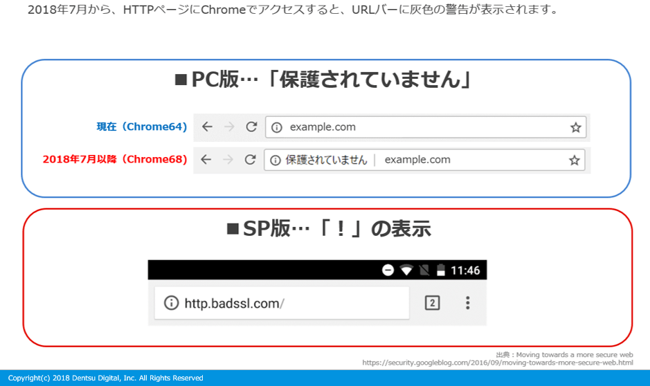 参考:Google ChromeのHTTP/HTTPS表示 (出典:電通デジタル)