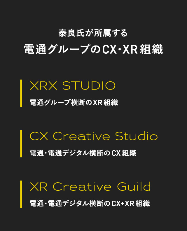 連載「CREATIVITY NEWAGE」第2回は、メタバースをはじめとして、XR(VR・AR・MRなど)を活用したビジネスデザインやクリエーションを手掛ける、電通デジタルの泰良文彦氏に、どうすればメタバースをビジネスの場として活用できるのか、話を聞いた。