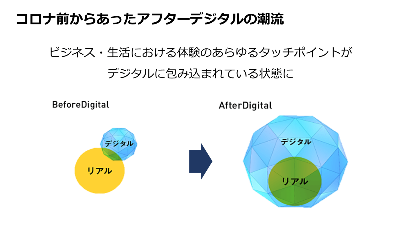 コロナ前からアフターデジタル、OMO、テックタッチ/ハイタッチとバリュージャーニー、カスタマーサクセスといった概念は存在していました。企業がBEYONDコロナへ向けてDXを進めていくなかで、これらの概念がどのように影響するのかを、引き続き説明していきます。