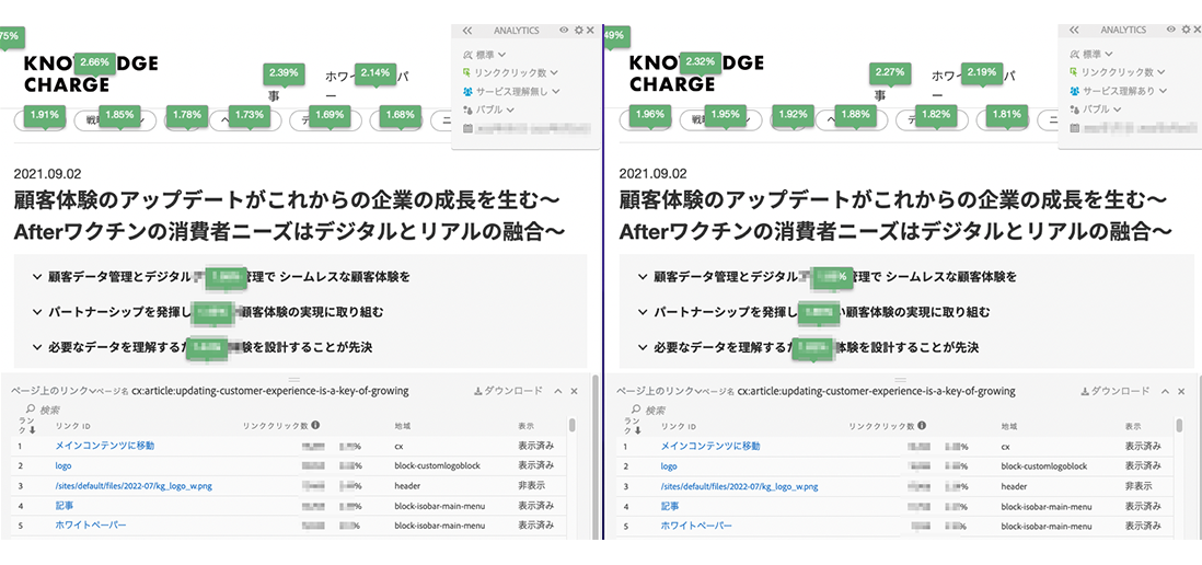 このように「コンテンツの環境、構造、提供意図」と「顧客行動の傾向を示すデータ」を重ね合わせて見ていくことで、顧客理解はより深まり、UIの改善を通じて顧客との良好な関係作りに役立っていきます。