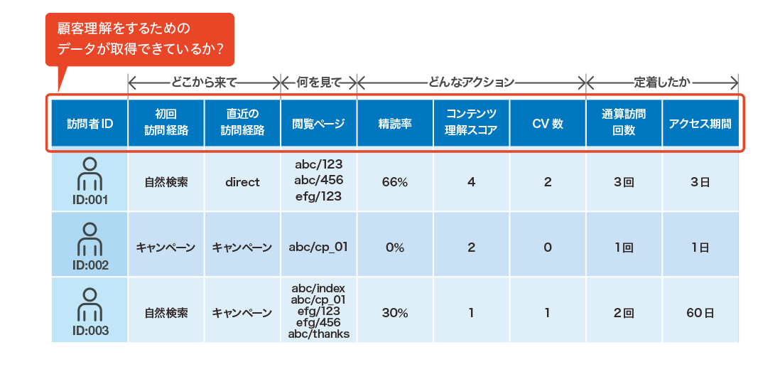 では、現状収集しているWebサイトやアプリの顧客利用状況を示すデータをどのように工夫すれば、「顧客理解」につながるのでしょうか?