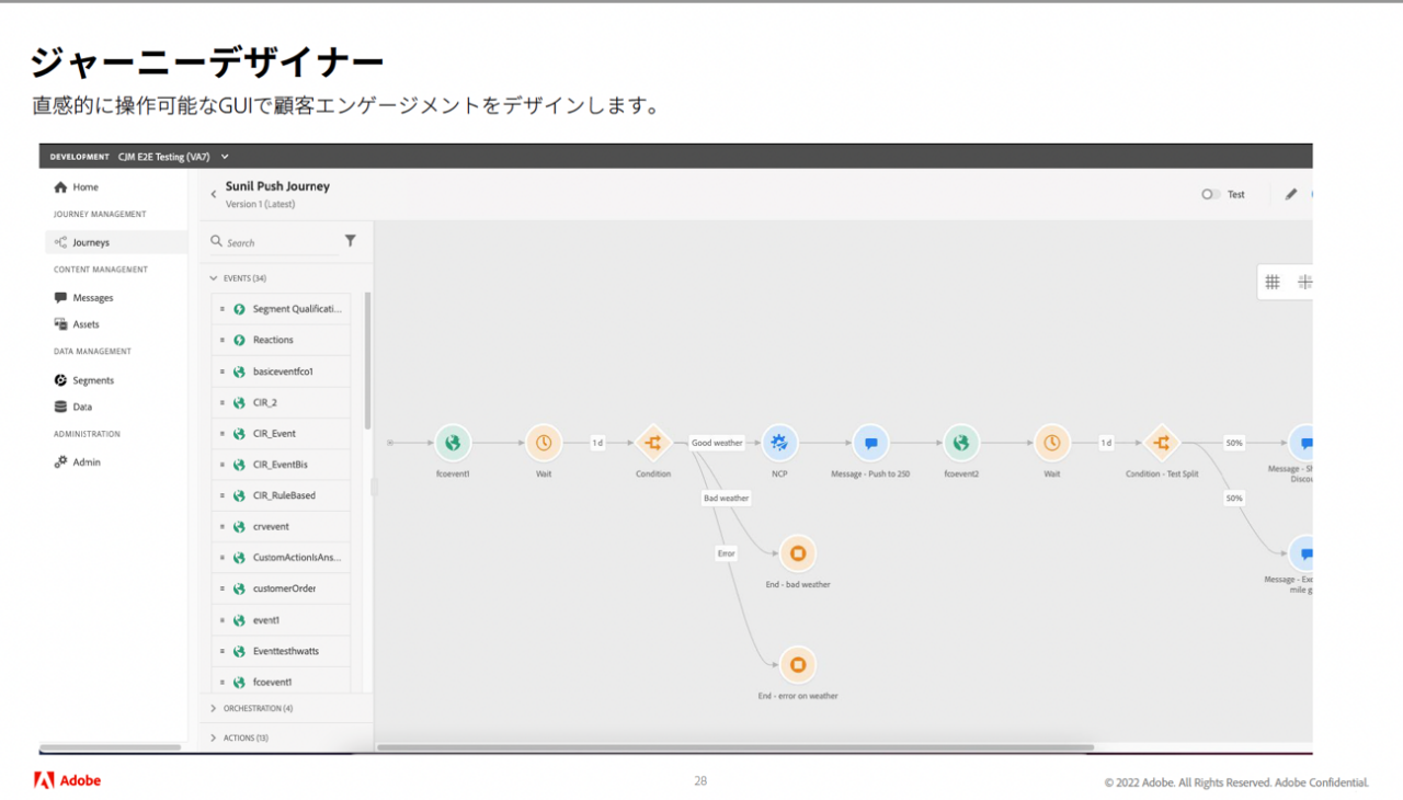 また、ジャーニーデザイナーという、ユーザーにパーソナライズされたコンテンツを配信する機能では、直感的に配信をデザインできます。