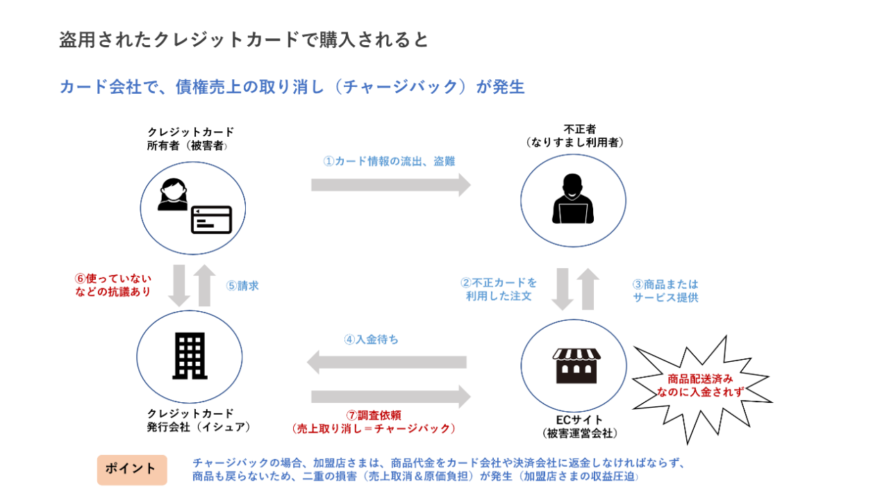 ──クレジットカードを不正利用されると、情報を盗まれたユーザーやクレジットカード会社はもちろんですが、EC事業者も大きな被害を受けますよね。