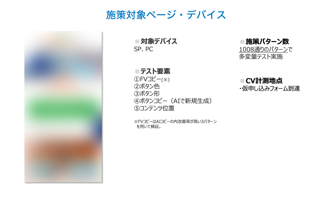 対象としたのは、サービスページのファーストビューに掲載されている以下のキャッチコピーです。