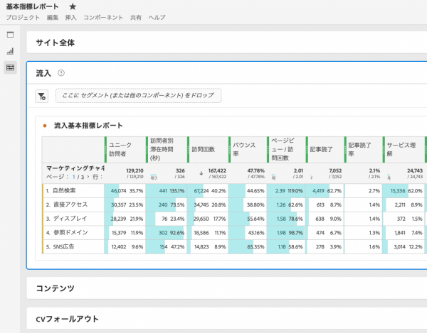 Adobe Analyticsを使えば、ドラッグ&ドロップで簡単にレポートが作成できます。Excelを介さず、直接レポートを作りながら試行錯誤してみるのも良いでしょう。