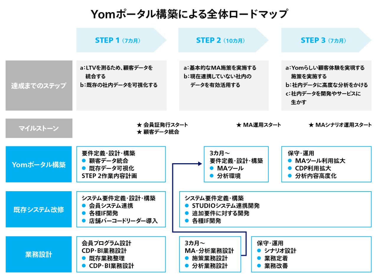 まだ具体的には言えませんが、このステップ3が実現することで、Yom様はデータ分析を生かした商品開発やサービス開発ができる、より強い会社になっていくと考えています。