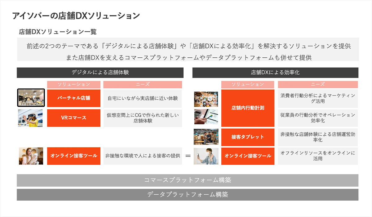 さらに、電通アイソバーではこれらの店舗DXソリューションを支える基盤となるコマースプラットフォームやデータプラットフォームも併せて提供している。
