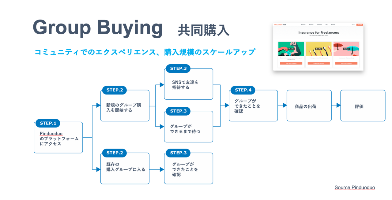 この考え方を進化させた例として挙げられるのが、「拼多多(ピンデュオデュオ)」です。「製造した商品を売る」という当たり前を覆し、お客様の需要があることが明らかになってから製品を製造する、というスタイルは画期的であり、ブランドの需要・在庫管理にも役立ちます。