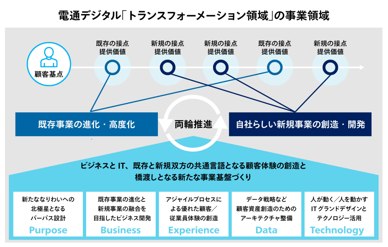 一方、電通デジタルの取り組みとしては、2022年1月に「トランスフォーメーション領域」を新設し、企業に対して既存事業と新規事業の「両利き経営」を提唱されています。これはどのような意味があるのでしょうか。