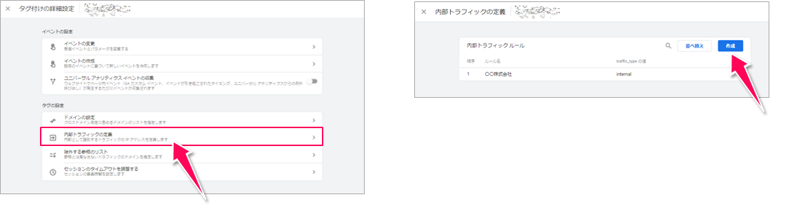 次に[内部トラフィックの定義]をクリックし、続けて[作成]をクリックします。