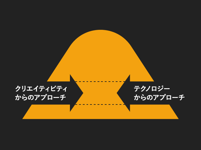 一方からはクリエイティビティを起点にグイグイ掘り進めるんだけど、同時に反対側からもテクノロジーを起点に掘ってもらう。