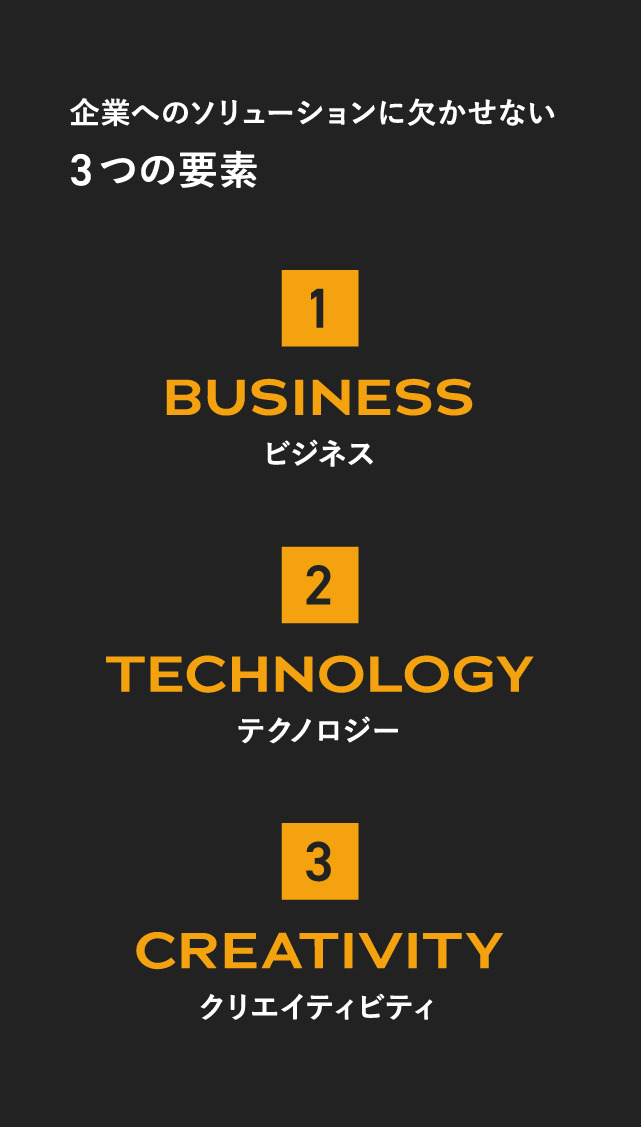 今、企業にソリューションを提供する多くの企業が、現代に欠かせない「ビジネス」「テクノロジー」「クリエイティビティ」の3つの素養を備えるべく、組織や人材の強化を行っています。