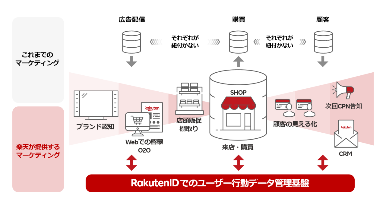 楽天グループ様が蓄積する1億以上の楽天IDは、日本国内における代表性があるデータですので、持続可能なマーケティング手法のひとつとして、IDを活用した先進的な事例の創出に向けてご一緒させていただいています。