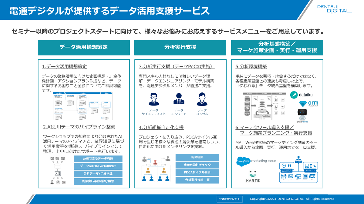 今回ご紹介したような課題をお持ちの場合、電通デジタルでは、以下のようなデータ活用支援サービスをご用意しています。
