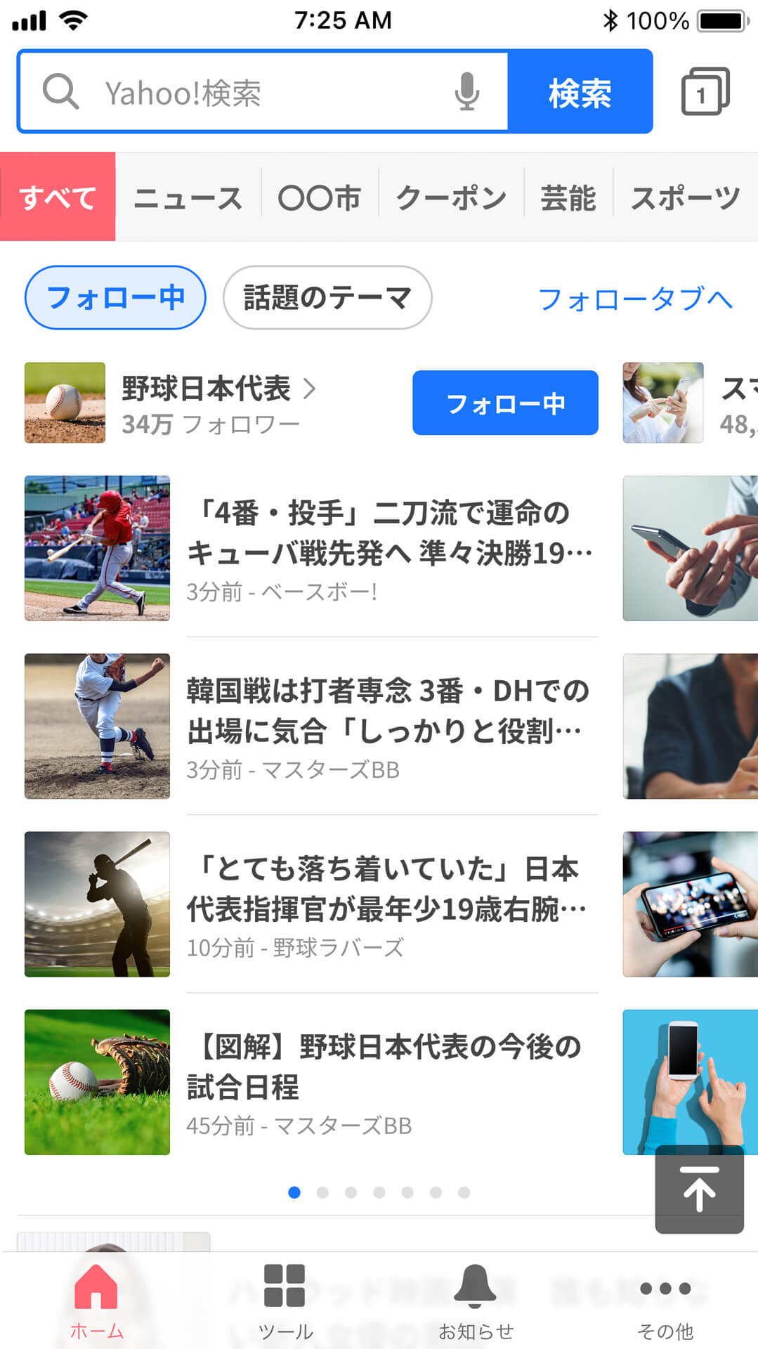 この画像は「野球日本代表」のテーマをフォローしている場合の表示イメージ