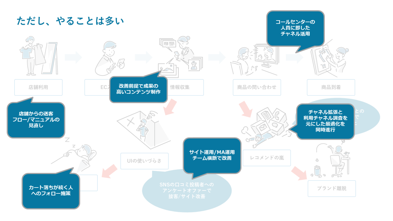 もちろんコミュニケーション設計には、MAだけでなく、Webサイトやスマートフォンアプリ、カスタマーサポート体制など、さまざまな顧客体験の要素が必要です。徹底的にユーザー視点で考え、長く愛されるためのコミュニケーション設計が重要です。