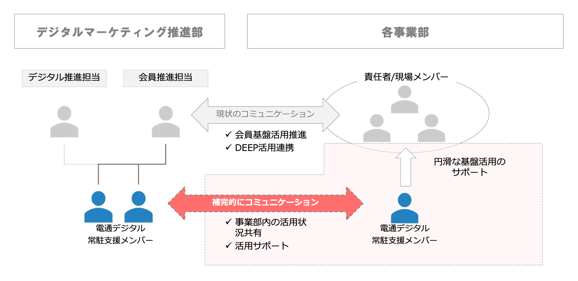 ミッションの拡大・変遷に伴い、当然チームに求められるケイパビリティも拡大していきましたが、そのケイパビリティを電通デジタルさんが保有していたことと、我々と深く併走してくれていた川原さんが最適な形で結びつけてくれたことで、スムーズに業務を拡大し、メンバーも成長することができました。