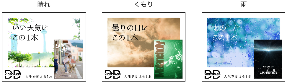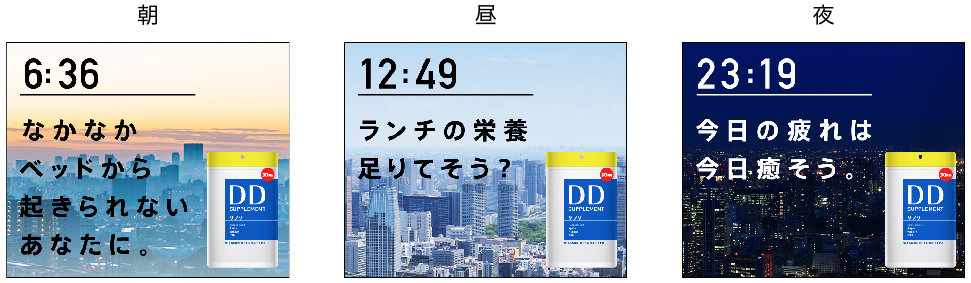 その日の天候に合わせて、コピーやビジュアルなどの広告表示を行う。