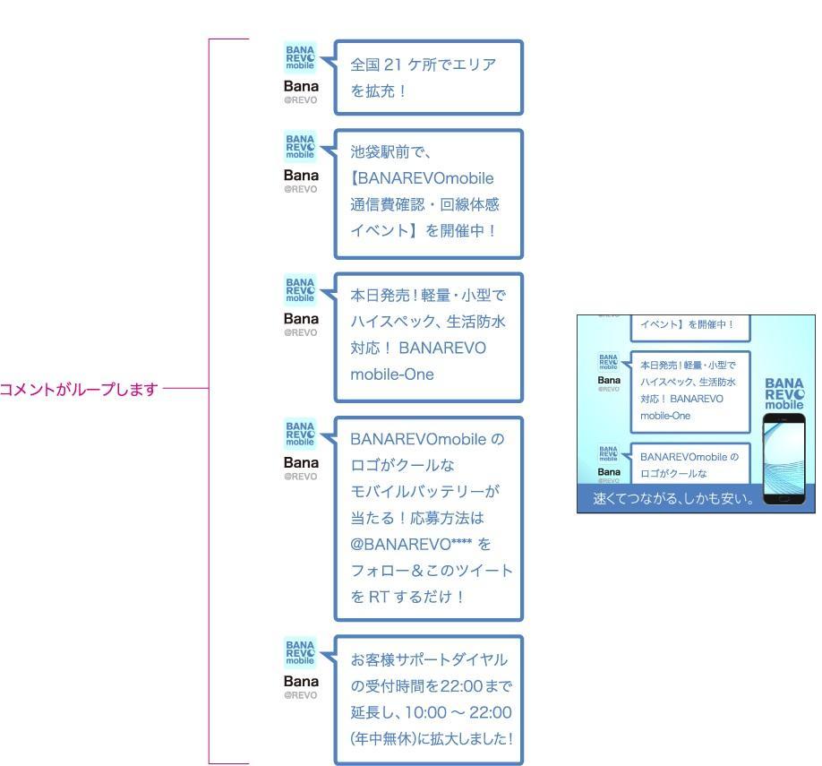 指定したTwitterアカウントのツイートを表示。メッセージをリアルタイムでバナーに反映可能。