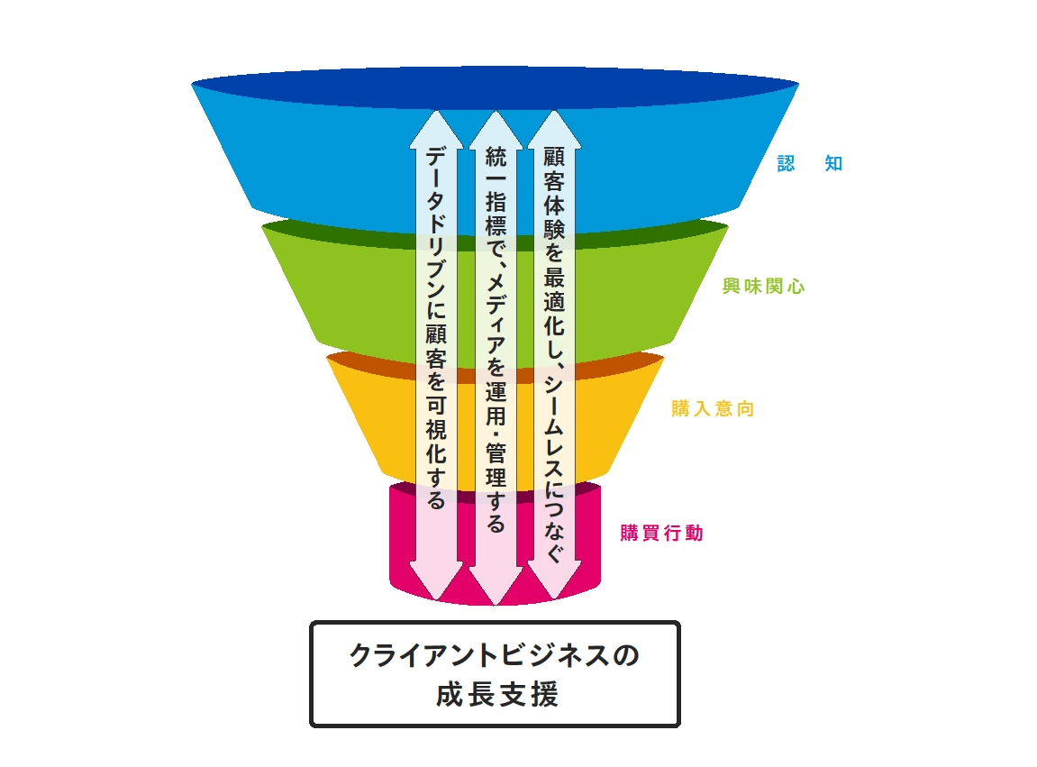 メディア接触データや購買行動データなど様々なデータをつなぐことで統合的なメディアプランニングを行い、さらに独自のターゲティング技術で効果の期待できる顧客へのアプローチを実行していきます。