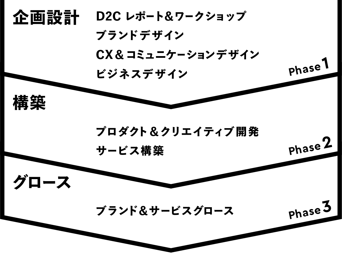 販売するプロダクトだけでなく、あらゆるブランドとの接点における顧客体験を軸にブランドアイデンティティや提供価値を設計し、顧客に長く愛されるブランドの立ち上げや再創造を実現します。 -