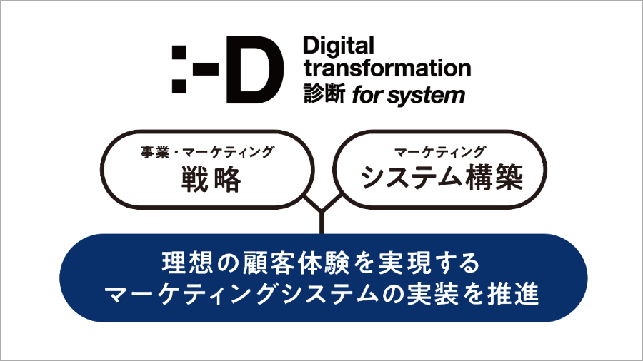 株式会社電通デジタル(本社:東京都港区 代表取締役社長執行役員:川上 宗一 以下、電通デジタル)、株式会社電通(本社:東京都港区 代表取締役社長執行役員:五十嵐 博 以下、電通)、株式会社電通国際情報サービス(本社:東京都港区 代表取締役社長:名和 亮一 以下、ISID)の国内電通グループ3社は、マーケティングシステムに特化した課題の抽出とソリューションを提示する「DX診断 for システム」のサービス提供を開始しました。