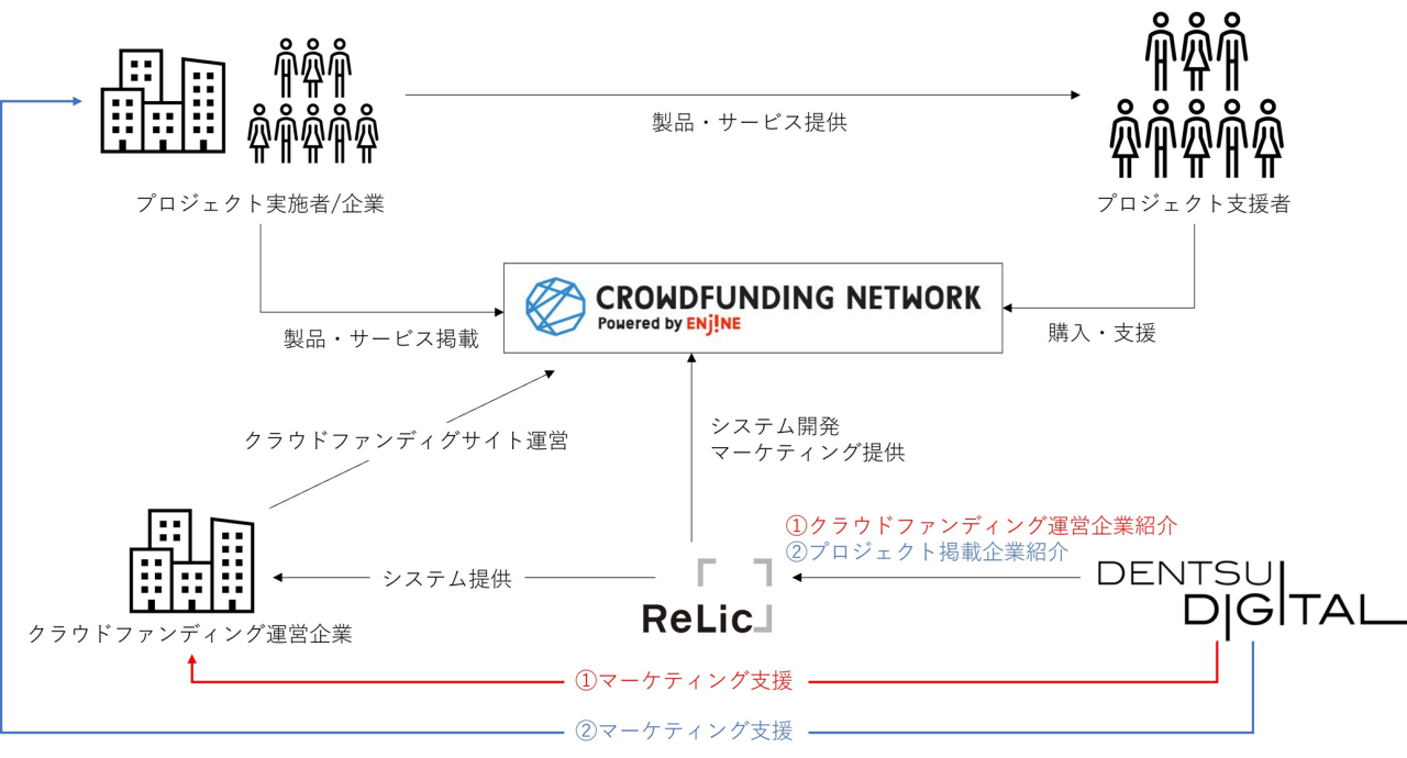 株式会社電通デジタル(本社:東京都港区 代表取締役社長執行役員:川上 宗一 以下、電通デジタル)は、株式会社Relic(本社:東京都渋谷区 代表取締役CEO:北嶋 貴朗 以下、Relic)と業務提携契約を締結し、クラウドファンディングを活用した統合マーケティング支援の提供を開始します。
